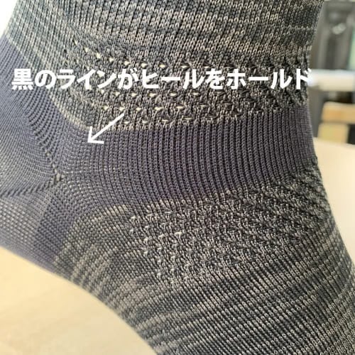 ULTIMATEやULTIMATE ASOに使用しているCORDURA FABRIC®️は使用していないものの、高強度ナイロンをかかと部分に使用しているため、従来のランニングソックスより約1.6倍の耐久度(破れにくさ)となっております。