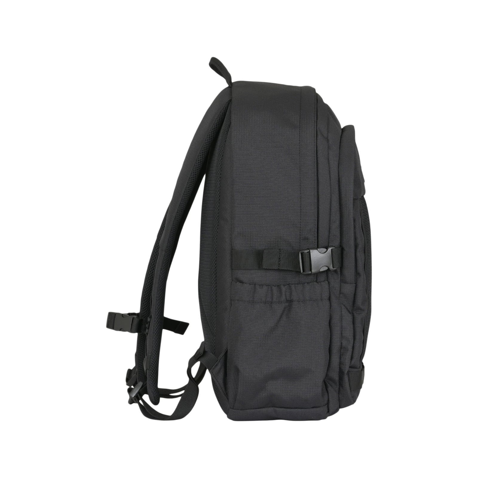 撥水加工600Dリップストップリサイクルポリエステルでデイリーユースでタフに使えるバックパックです。背面メッシュパネル、ベンチレーションストラップで荷重を分散。両サイドのボトルポケットなどデジタルガジェットからノートや筆記用具まで十分な容量となっています。