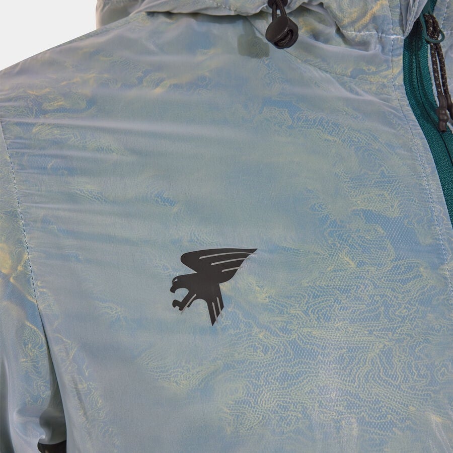 二重生地で作られています。内部はMICRO-MESH SYSTEM技術で作られており、汗を吸収し、体温を一定に保ちます。透明効果のある外側部分により、内部のプリントが見えるようになります。防水性があり、防風性があり、耐久性があり軽量です。